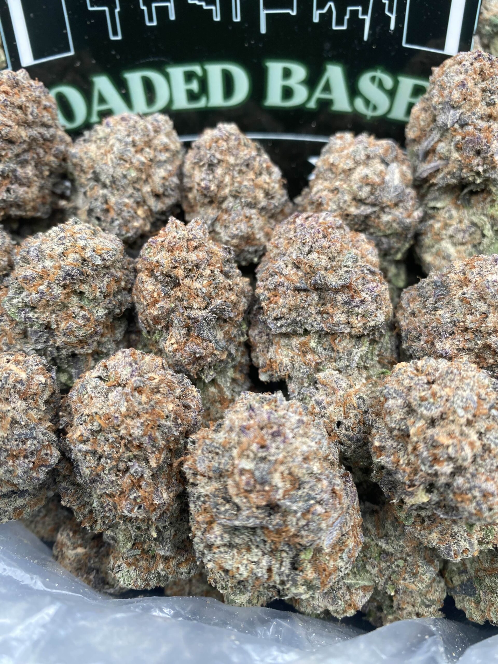 • Dense, resin-coated nugs with deep purple coloration